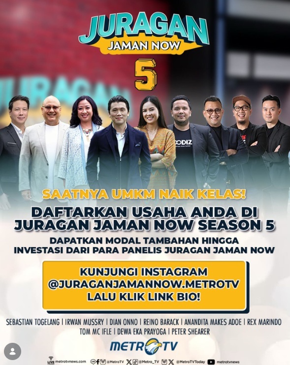 Juragan Jaman Now adalah sebuah program kompetisi wirausaha yang mempertemukan para UMKM dan para investor secara langsung. Setiap peserta akan mempresentasikan usaha mereka dihadapan para panelis untuk mendapatkan suntikan modal, investasi, channel penjualan yang baru, pelatihan dan pengembangan bisnis hingga go international. Dengan tagline “SAATNYA UMKM NAIK KELAS!” Program ini melibatkan para pengusaha papan atas yang sudah go international sebagai panelis dan para praktisi bisnis yang akan menjadi mentor setiap peserta UMKM yang terlibat. Ratusan juta hingga miliyaran rupiah akan didapatkan setiap peserta yang akan mengikuti kompetisi Juragan Jaman Now. semua yang mengikuti juragan jaman now adalah para pelaku umkm yang sudah menjalankan bisnisnya minimal selama 3 tahun.