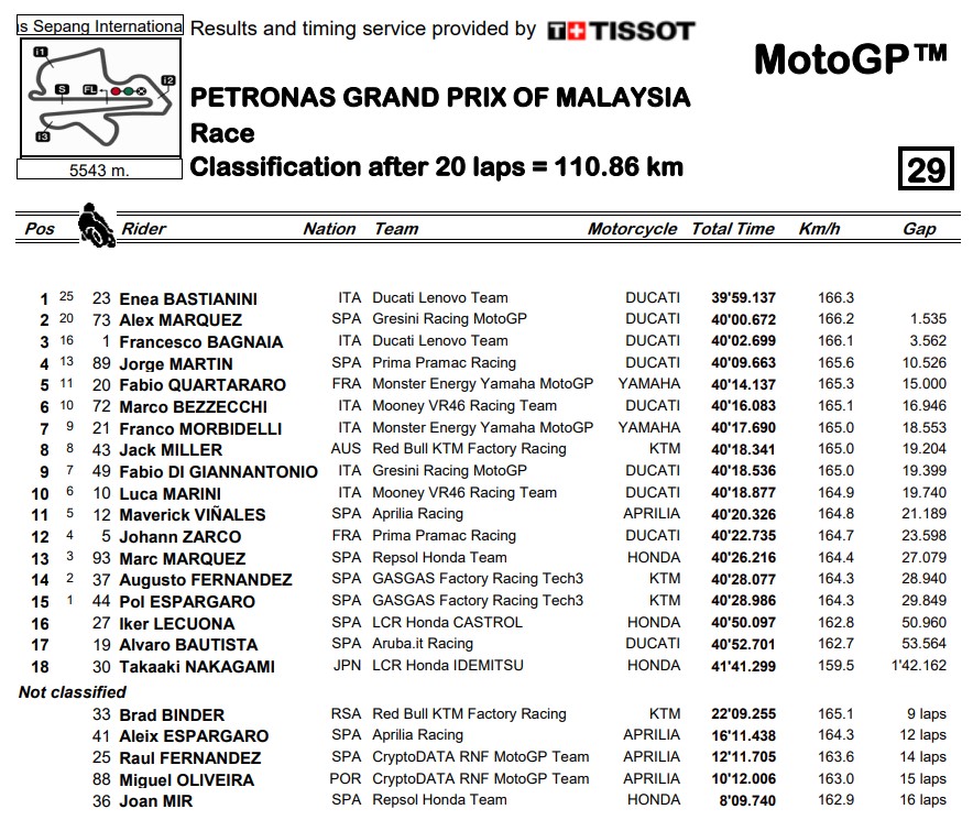 Berikut hasil lengkap MotoGP Malaysia 2023: