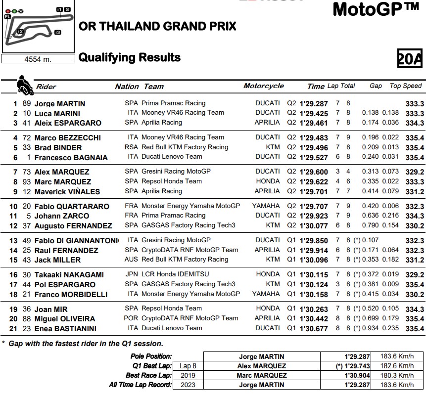 Berikut hasil lengkap sesi kualifikasi MotoGP Thailand: